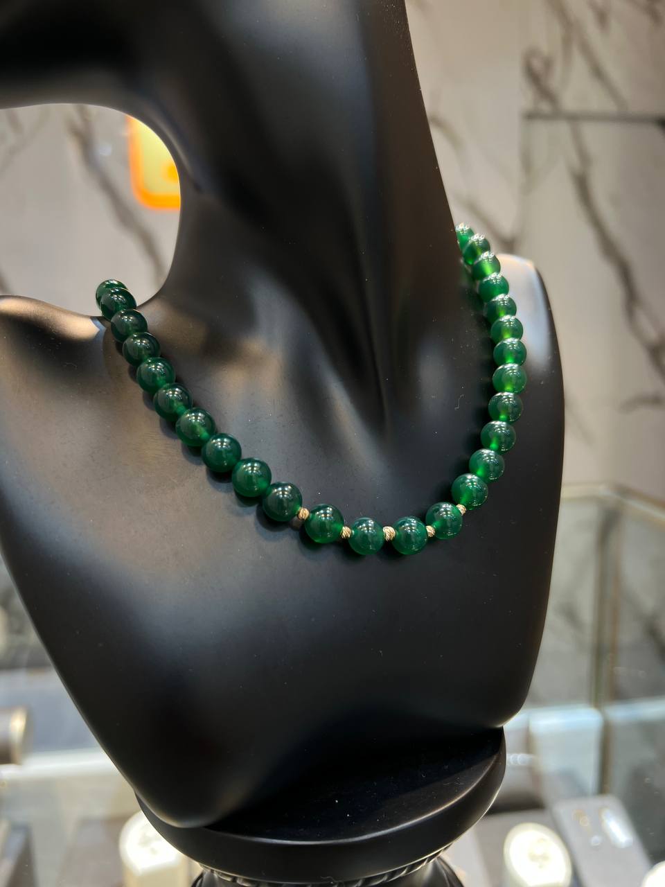 گردنبند عقیق سبز ؛ با گوی ها طلا تراش دار البرناردو. مناسب استفاده روزانه
