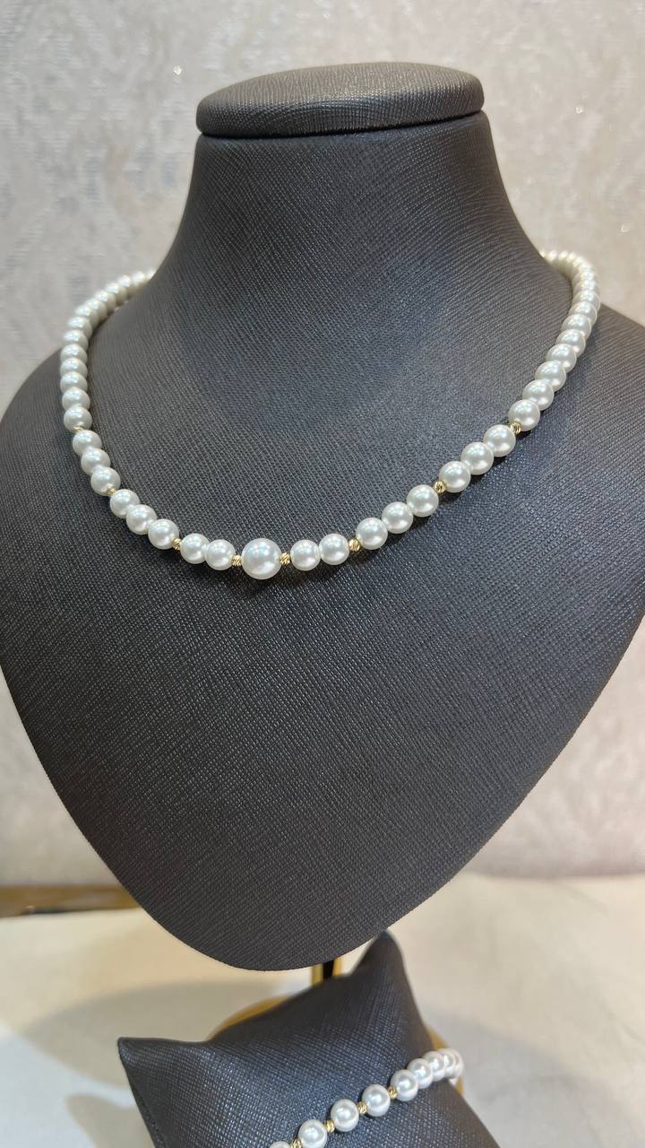 گردنبند مروارید ؛ با گوی ها طلا تراش دار البرناردو. مناسب استفاده روزانه